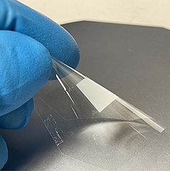用于成像应用的柔性基板上的聚合透镜的微透镜阵列。 (微透镜间距=70μm,f数:f/0.5,基板厚度40μm)
