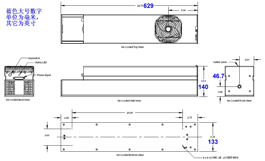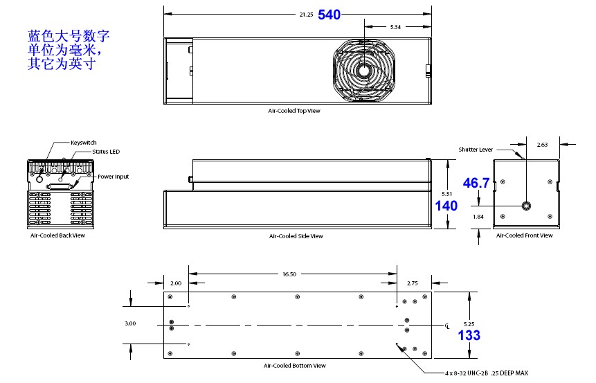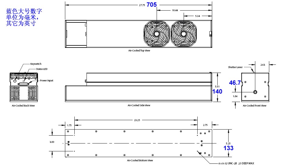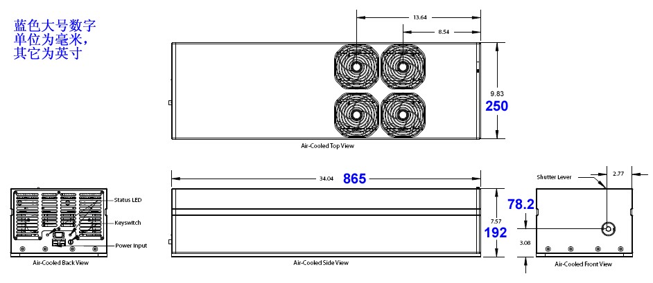 • OEM标准型,包含铝制外壳和风扇,特别适合需要将激光器外露的使用场合。