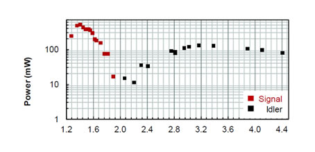 平均功率高达400 mW的信号和100 mW 的闲频